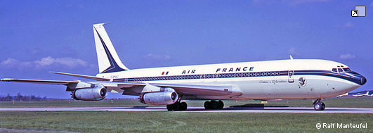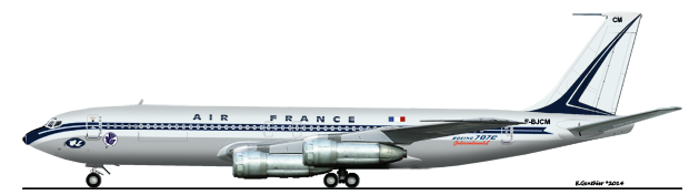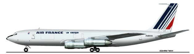 Aménagement du 1 août 1960 au 18 août 1960. Frêtement : AIR AFRIQUE, AIR MADAGASCAR, AIR INTER. Accidenté à Pointe à Pitre le 7 octobre 1960 : A l'atterrissage, l'avion touche le sol avant le seuil de piste. Celle-ci étant en surélevation, les trois trains s'effacent dans la structure. L'avion continue sa course sur le ventre. Aucune victime. Réparation effectuée par Boeing. Remis en service le 20 décembre 1960. Réformé le 17 octobre 1977. Ferraillé à Orly. Dernier propriétaire connu : Air France |