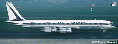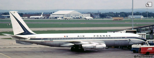Aménagement du 3 février 1962 au 23 février 1962. Frêtement : AIR AFRIQUE, AIR MADAGASCAR, AVIANCA, AIR INTER, UTA, MEA, BMA. Accidenté à Pnom-Penh le 11 avril 1965 (vol Hong-Kong - Orly): Erreur de piste, l'avion se pose sur la piste de Kompong-Cham( 1200m), trop courte pour un B707. L'avion dépasse l'extrémité de la piste, le train avant se brise. 4 PNT, 7 PNC, 98 passagers saufs. Remis en service le 8 août 1965, la piste est rallongée pour permettre le décollage. Le 19 septembre 1966, le Boeing 707 F-BHSR « Château de Cheverny » d’Air France rouvre la ligne Paris /Shanghai, en 22 heures et 25 minutes, via Athènes, Le Caire, Karachi et Pnom Penh. Air France est la première compagnie occidentale à desservir la Chine populaire. Réformé le 8 mars 1976. Ferraillé à Orly. Radié le 23 mars 1976. Dernier propriétaire connu : Air France. |