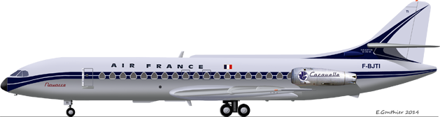 Premier vol en 1963, immatriculée F-WBNJ, puis F-BONJ, cette caravelle fut ensuite immatriculée F-BLCZ et livrée à AIR FRANCE le 9 août 1963.