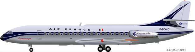 Premier vol le 18 mars 1963, immatriculée F-WHOA. Livrée à AIR FRANCE le 21 mars 1963, immatriculée F-BOHA et baptisée " Comté de Nice". Renommée en 1970 " Guyane" et " Comté de Nice" en 1974. En 1980, rebaptisée " Guyane", cette caravelle fut retirée de la flotte AIR FRANCE en octobre 1988, pour être exposée sur l'Aéroport d'Avignon. (Voir le site consacré à cette caravelle) |