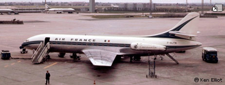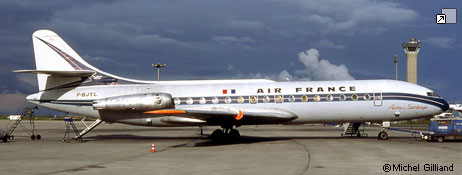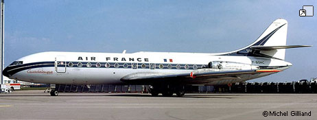 Premier vol et test Sud Aviation : F-WJTK, le 1er février 1963. Immatriculée F-BJTK le 6 février 1963 et livrée à AIR FRANCE, nom de baptême " Principauté de Monaco", le 13 juin 1963. Entrée au service du GLAM (Armée de l'Air) le 13 septembre 1963, et immatriculée F-RAFG jusqu'à l'arrivée, 3 ans plus tard, du DC8 Long Courrier. L'appareil est endommagé à Bruxelles en février 1968 et termine sa carrière au Musée de l'Air du Bourget (le 28 mars 1980).