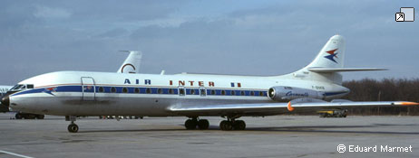 Premier vol, immatriculée F-WLKF, le 30 juin 1963. Livrée à AIR FRANCE, immatriculée F-BLKF et baptisée "Angoumois". Retour à Sud Aviation, immatriculée F-WJAO et louée à AIR INTER, immatriculée F-BJAO. Vendue au Centrafrique en avril 1982, immatriculée TL-FCA, puis TL-KAB. |